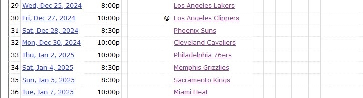 接下来勇士又将迎来一波艰苦赛程,他们首先在圣诞大战面对湖人,然后再战快船。接下来他们将依次面对太阳、骑士、76人、灰熊、国王和热火。