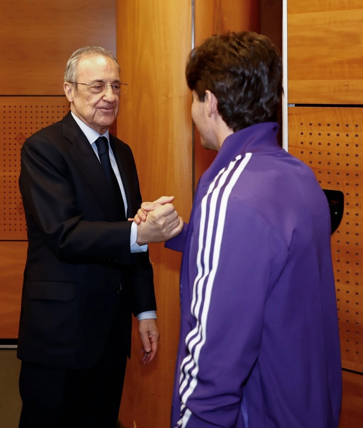 4月13日宣 今晚,皇马将在西甲客场挑战阿拉维斯,弗洛伦蒂诺赛前来到球队下塌酒店,与队员们会面。