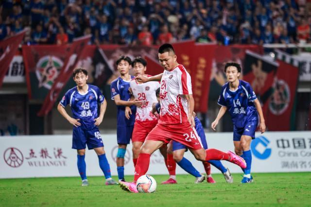 湘超首轮,杨柯的点球帮助球队将比分扩大为2-0。长沙市足协供图