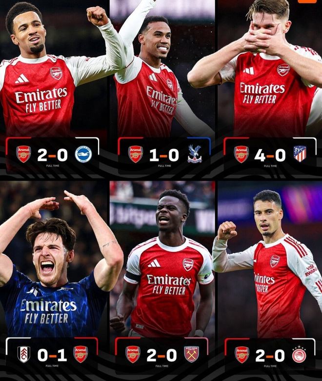 这场胜利为阿森纳完美的十月表现画上了圆满的句号。数据统计显示,阿森纳创造了一项英格兰顶级联赛的,他们是英格兰顶级联赛历史首支能够在一个月内取得6战全胜且0丢球的球队。在刚刚过去的十月份,展现了令人叹为观止的攻防统治力。6战全胜包括英超、欧冠和联赛杯,进12球0失球。这一惊人的“6战全胜+0丢球”数据,使阿森纳超越了所有历史上的英格兰顶级联赛球队,成为了新的历史纪录保持者。