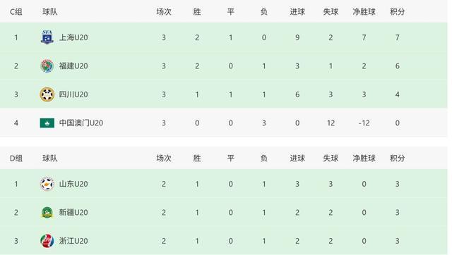 徐根宝执教的上海U20男足艰难晋级八强;浙江队、新疆队还需要通过抽签决定谁能晋级。