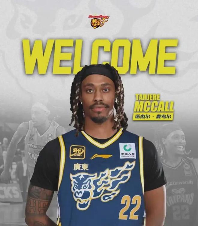 塔杰尔-麦考尔,1994年出生,身高1米93,上赛季在广州队打球场均贡献22.9分5.1板5助2.1断,攻防一体杀伤力十足的双能卫。