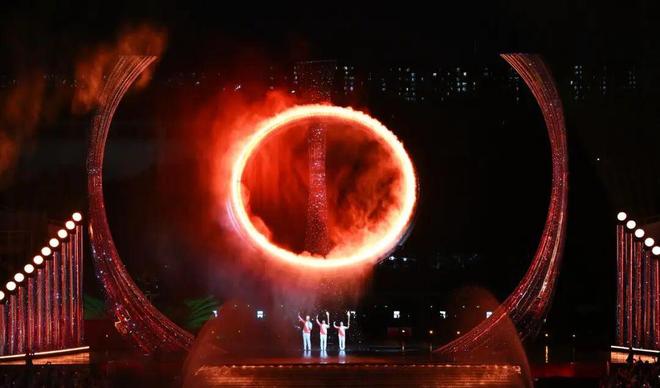 十五运会主火炬塔被点燃。图源新华社。