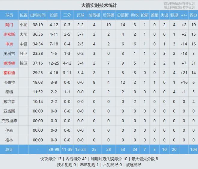 北京时间11月27日,NBA杯小组赛:火箭104-100逆转勇士。杜兰特因家庭事务,连续第二场缺阵。火箭探花谢泼德爆发:首发出战37分钟,25投12中,三分12中4,罚球4中3,狂砍31分9篮板5助攻1抢断2盖帽,正负值+7。
