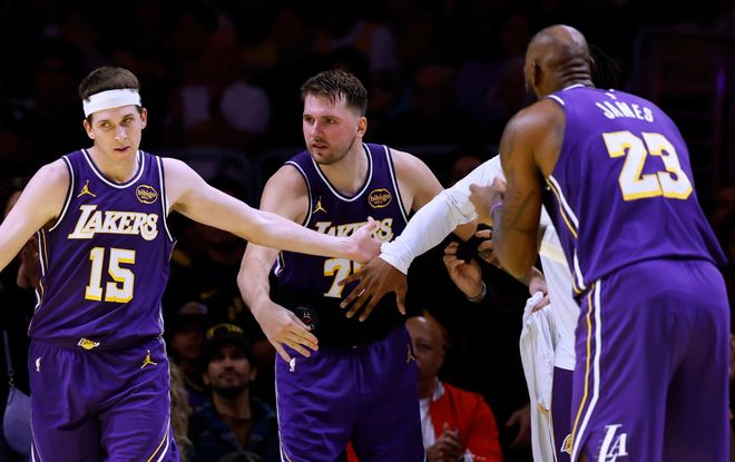 湖人129-119击败独行侠,独行侠防守效率联盟第三不容小觑,本场比赛也有8人得分上双,不过湖人在詹姆斯复出后,沿用此前的战术打法,詹姆斯融入很到位。里夫斯全场15中12砍下38分8篮板,东契奇35分11助攻,老詹13分7助攻,湖人进攻基本盘太强了。而浓眉时隔1个月迎来复出,打五号位拿到12分5篮板5助攻。当然在湖人起飞的背后,还有一个严峻问题,就是替补席贡献太少。此外詹姆斯连续1296场比赛得分上双,继续刷新自己保持的历史纪录。