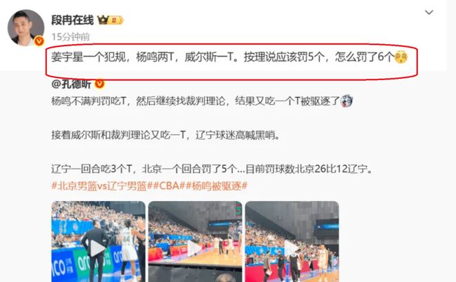 然而,辽宁队主教练杨鸣,对裁判的这次吹罚十分不满意,不断抱怨裁判!甚至,喷出了垃圾话,裁判在忍无可忍的情况下,吹了杨鸣一个技术犯规。但是,吃到技术犯规的时候,杨鸣依然没有停止,继续喷裁判,还一度摸了99号裁判的屁股……