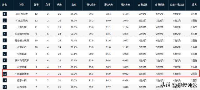 广州男篮目前的战绩为7胜7负排在积分榜第10,郭艾伦持续高挂免战牌,主帅米切尔依靠徐昕,刘颜诚,陈国豪等年轻球员,打出了50%胜率,以目前14轮的阶段,足以称得上优秀。